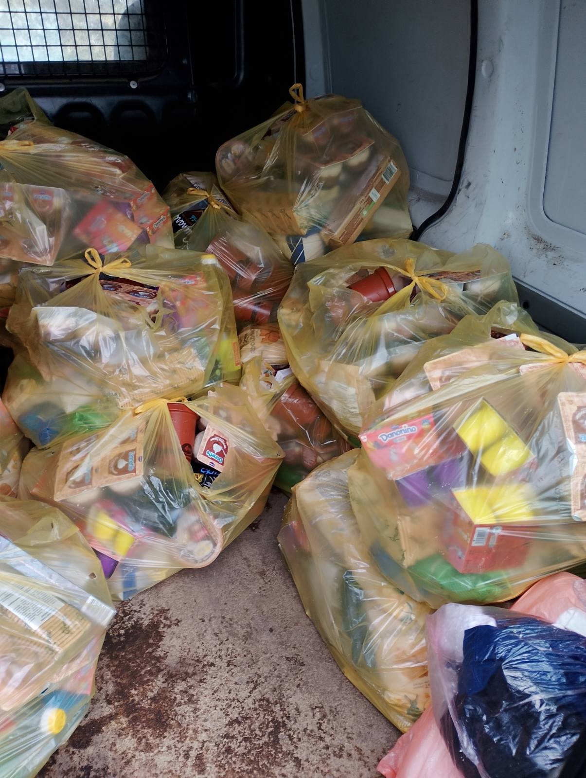 По един пакет от хранителните продукти са раздадени на 60 лица, а на 36 деца с увреждания са дадени двойни пакети.