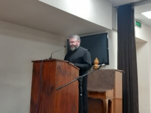 Слово произнесе и Негово Високоблагоговейство отец Рафаил – Архиерейски наместник на Белоградчишка духовна околия. В него той накратко разказка историята на Възраждането и наблегна на имената, които са останали в историята на България като дейци на просвещението и национално-освободителното движение. „Неслучайно за Ден на народните будители се е приела не някоя обикновена календарна дата, а 1 ноември, защото на този ден, според тогавашния Григориански календар, се празнува преподобния Йоан Рилски Чудотворец, който се почита като покровител на българския народ. Целта на празника била да се прослави делото на Свети Йоан Рилски, на Светите братя Кирил и Методий, на славните възрожденски дейци, на преподобни Паисий Хилендарски и много други.“