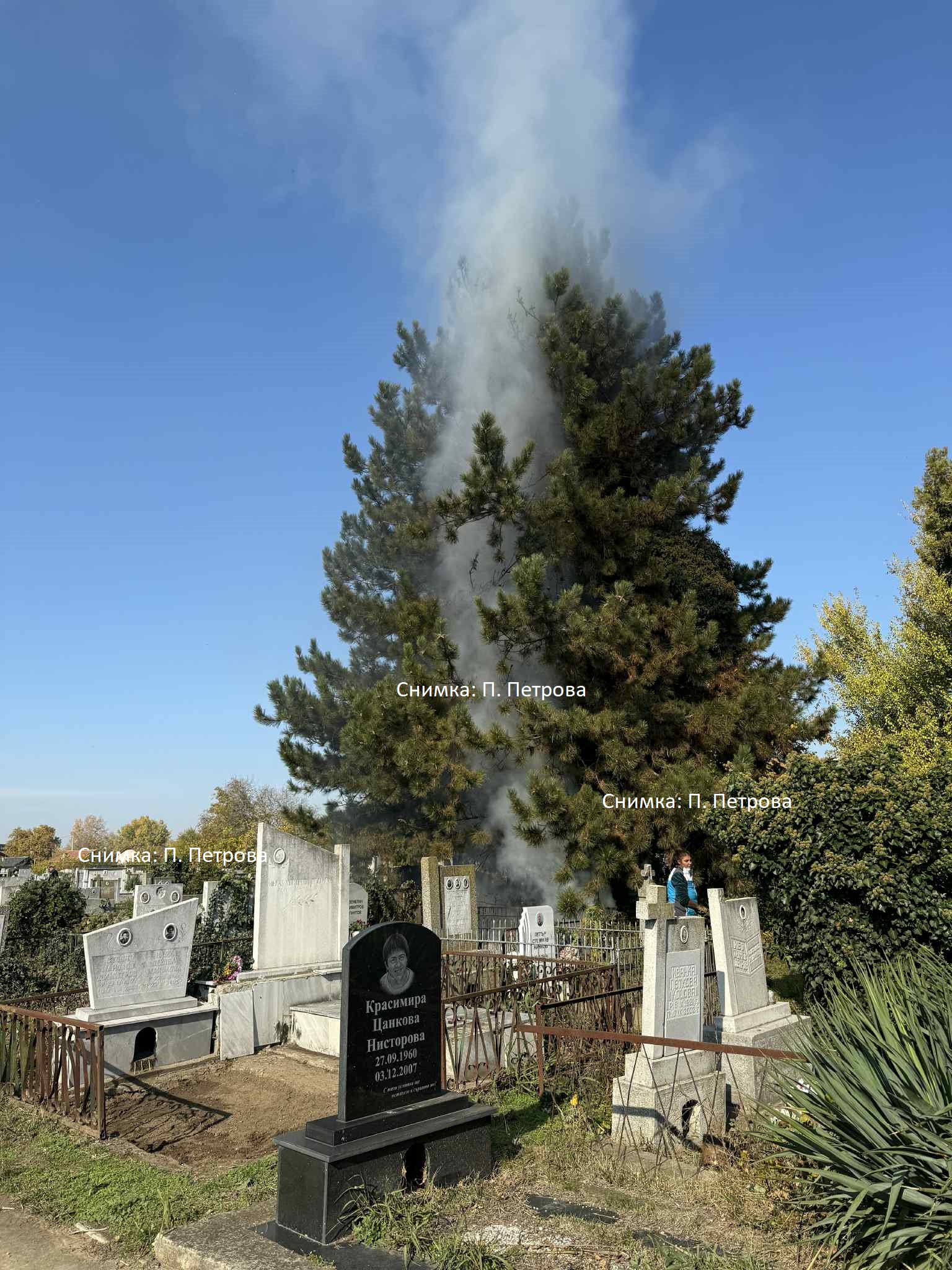 Около обяд днес, на Архангелова задушница, пламна бор в стария гробищен парк. Точната причина все още не е оповестена официално, но има вероятност пламъците да са тръгнали от незагасени свещи.